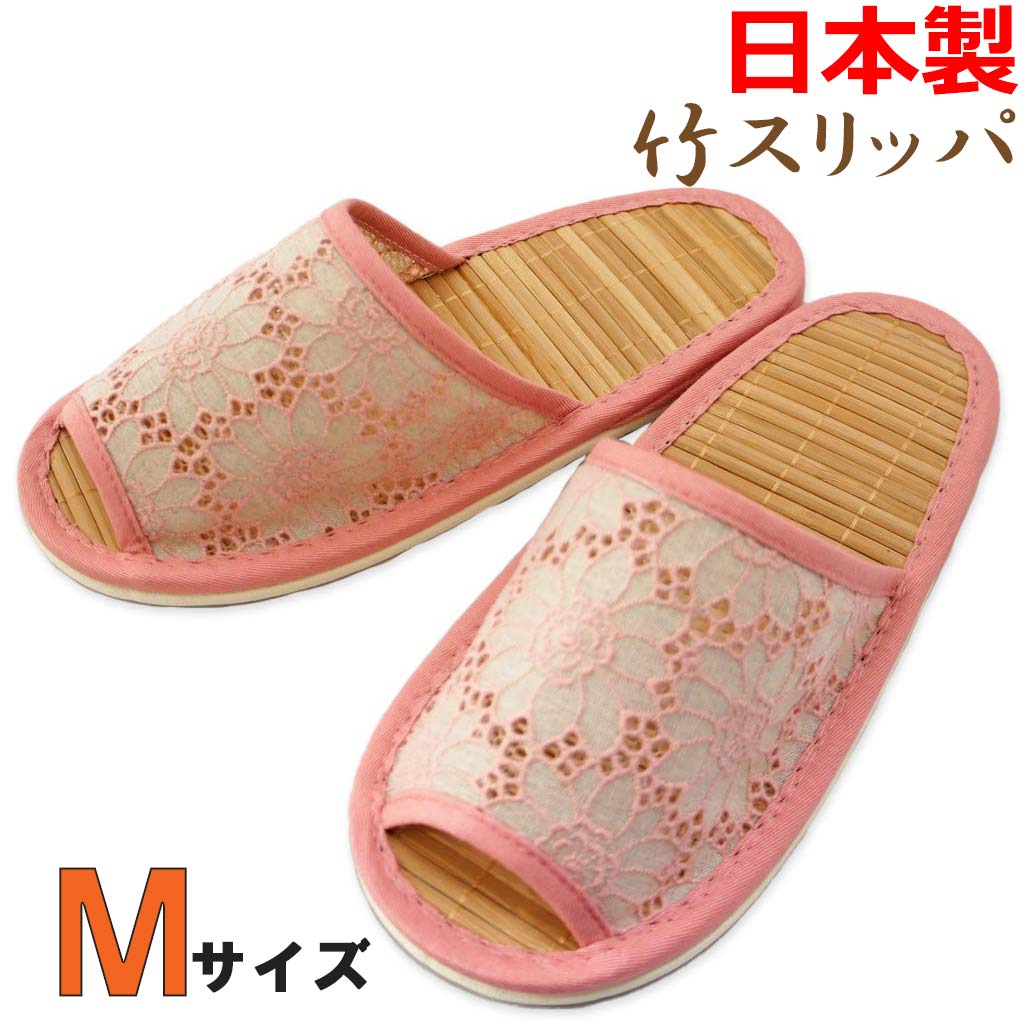 竹 スリッパ 麻フラワーレース中竹外縫い Mサイズ 約25cmまで 日本製