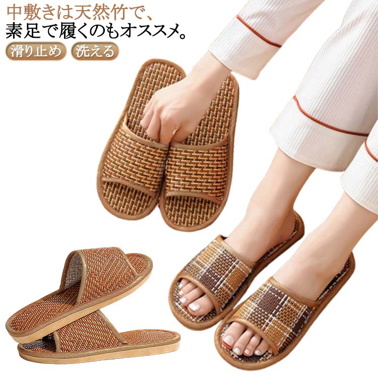 スリッパ 部屋用 洗える 履きやすい 竹スリッパ サンダル ルームシューズ メンズ 涼しい 室内履き・・・