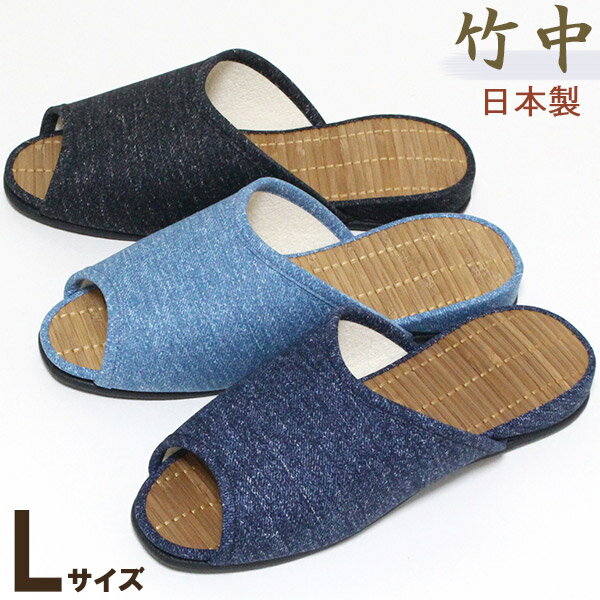 スリッパ 夏用 竹中 かすりデニム Lサイズ メンズ 前開き 夏 日本製
