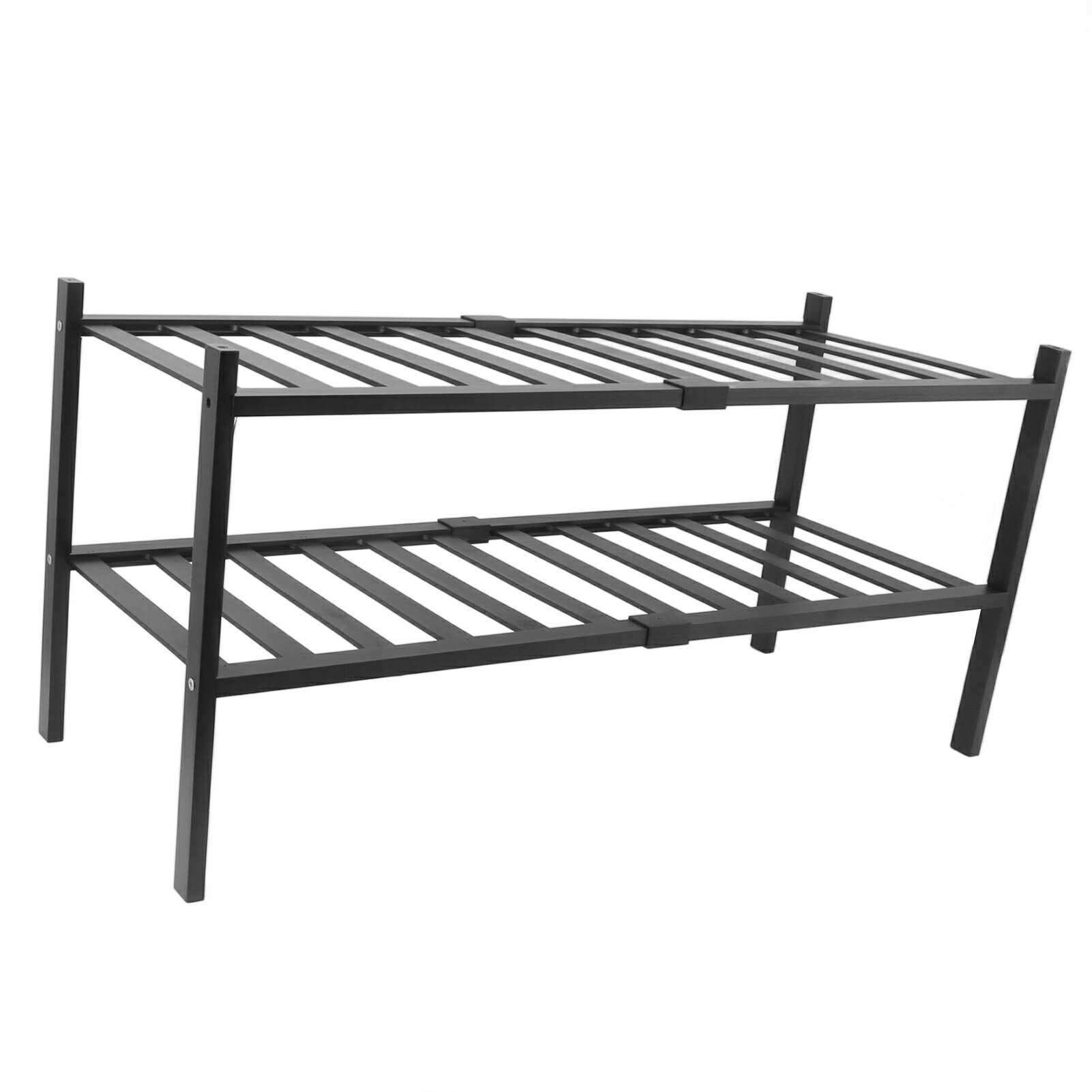 クローゼットシューズラック 操作が簡単な竹製シューズラック 積み重ね可能 ブラック 玄関用 (2層)