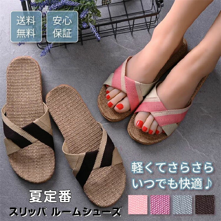 スリッパ 夏用 麻サンダル 送料無料 レディース メンズ 涼しい 蒸れない 洗える リネン 室内履き・・・