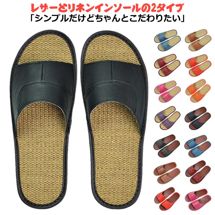 メンズ スリッパ リネン レディース レザー ルームシューズ 麻 天然牛革 夏用 スリッパ 本革 メ・・・