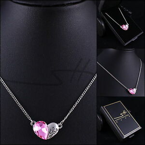 【送料無料】ジュエリー・アクセサリー ピンクハートネックレスシルバーレディースチェーンスワロフスキー・・・