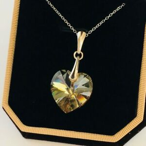 【送料無料】ジュエリー・アクセサリー シルバースワロフスキークリスタルハートネックレスゴールドシャド・・・
