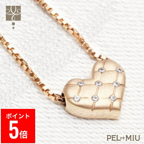 【BF期間ポイント5倍!】 【PEL et MIU】キルティングハートネックレス ピンクゴールド S・・・