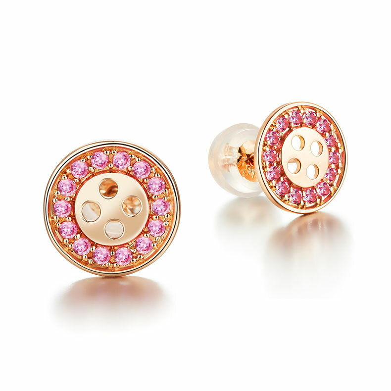 IUHA 18K金製 ピンクゴールド 【ボタン】ピアス SWAROVSKI スワロフスキー社製ジルコ・・・