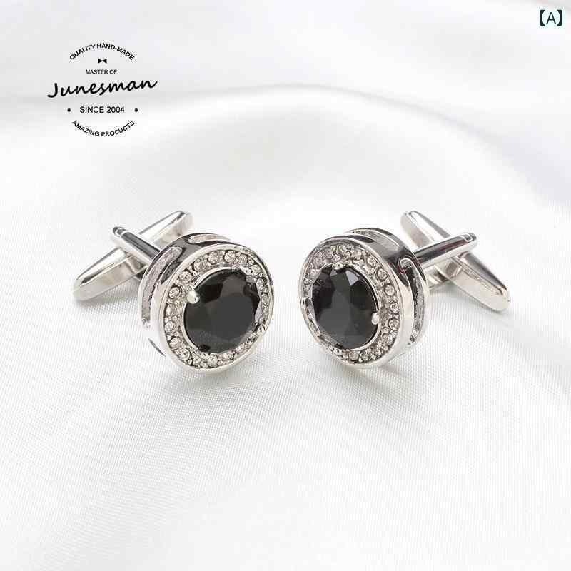 カフス ボタン シャツ 手 磨き June メンズ フレンチ カフスボタン スワロフスキー ブラック・・・