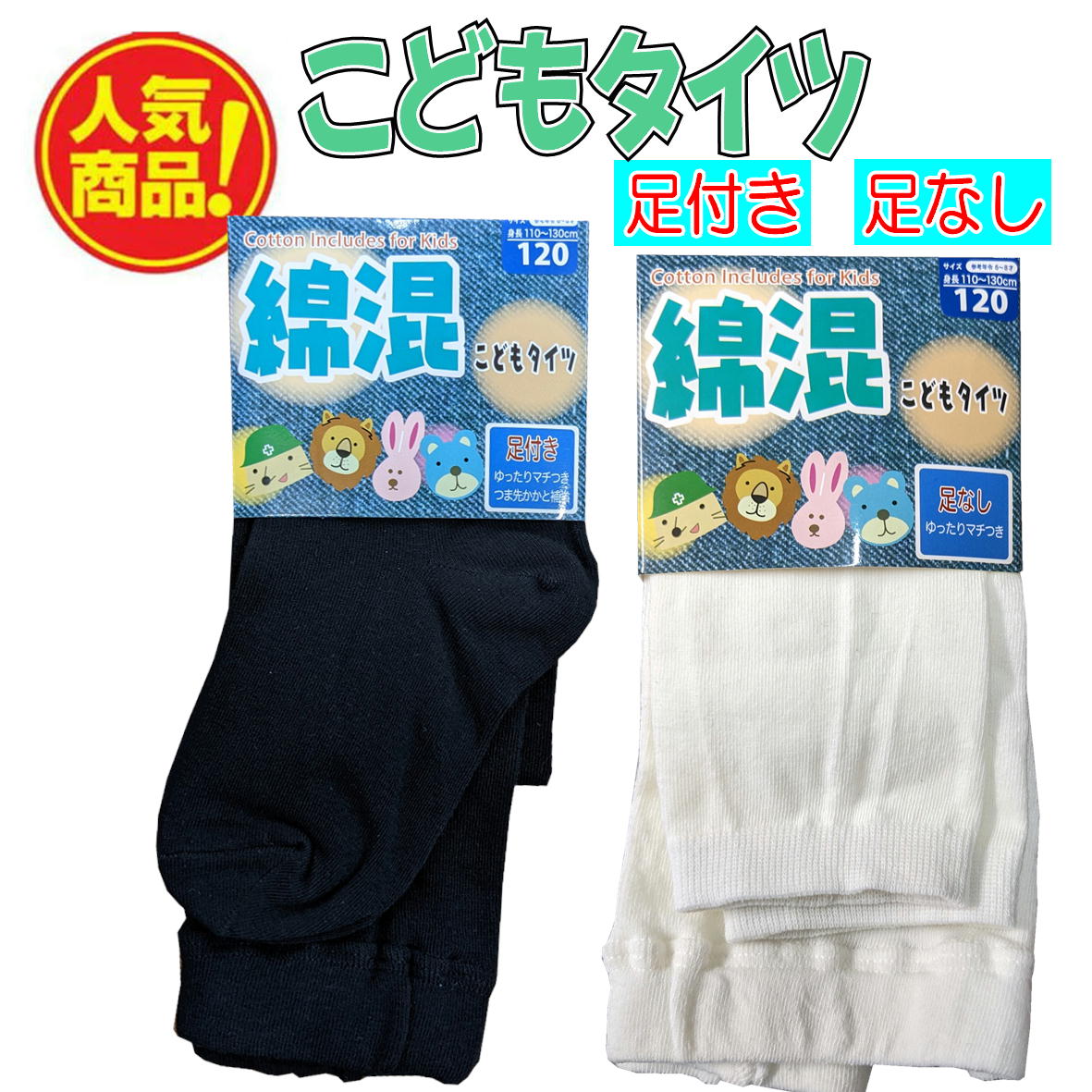 こどもタイツ 綿混 無地 子供タイツ 当店人気ナンバー1 キッズ 綿混 タイツ 足付き 足なし 白 ・・・