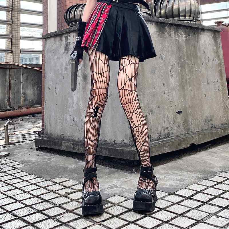 タイツ レディース 網タイツ ガーター風 スカル柄 不規則メッシュ 透かし編み ブラック 薄手 春夏・・・