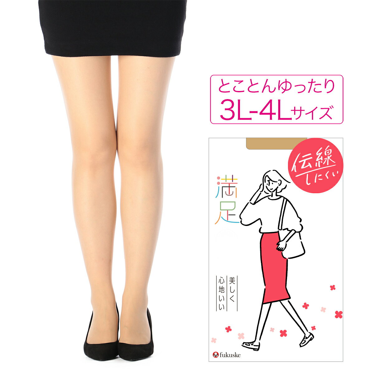 ストッキング レディース 満足 伝線しにくいノンラン設計 無地 3L4L/満足(manzoku)