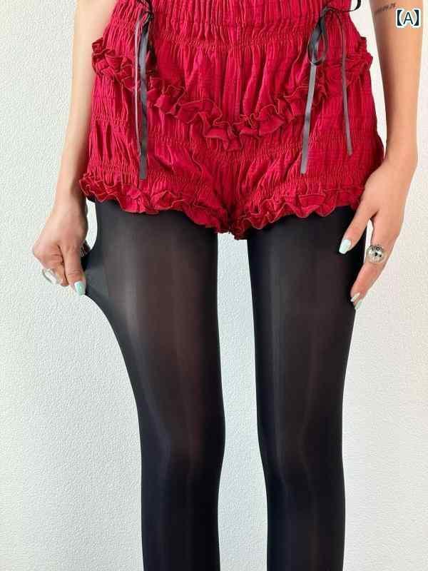 追加のフリース生地を使用した秋冬向け280デニールのタイツ。裏起毛で暖かい.ノーパンティラインで膝下・・・