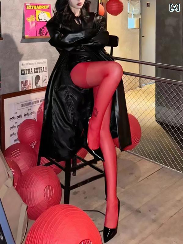 レディース ストッキング 120デニールのハイエンドレトロベルベット素材で魅惑的赤のストッキング。大・・・