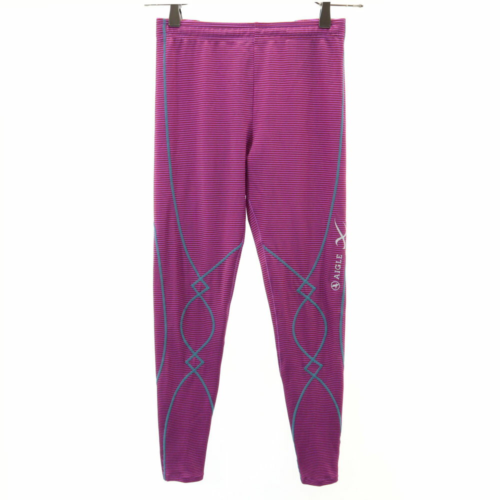 古着 AIGLE エーグル 日本製 ボーダー柄 トレーニング レギンス M ピンクパープル CW-X・・・