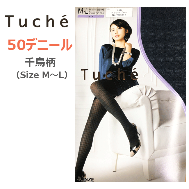 【メール便対応】グンゼ【Tuche】トゥシェ50デニール相当 千鳥柄タイツ[M-L][ブラックブルー・・・