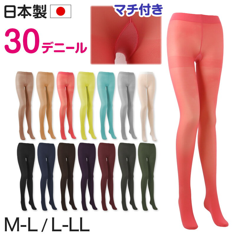 カラータイツ シアータイツ レディース 30デニール M-L・L-LL 秋 冬 春 無地 黒 白 赤・・・