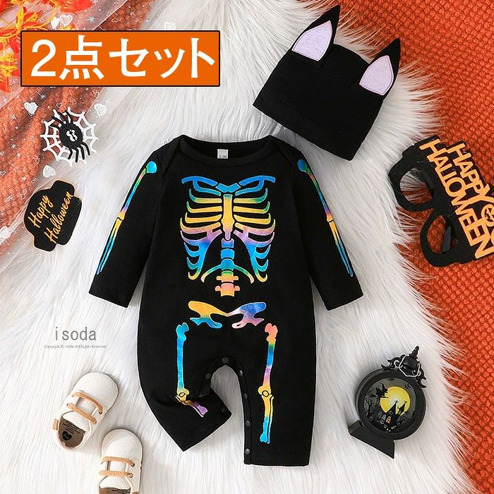 ハロウィン 衣装 子供 ベビー ロンパース スケルトン 悪魔 骸骨 帽子 発光 コスチューム 仮装 ・・・