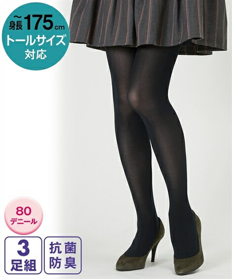 タイツ レディース 抗菌防臭 80デニール 3足組 静電気防止 黒 S〜M/M〜L インナー 女性 ・・・