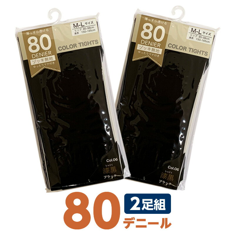 【送料無料】80デニール カラータイツ 黒 ブラック 【1セット2足組】 2セットまでクリックポスト・・・