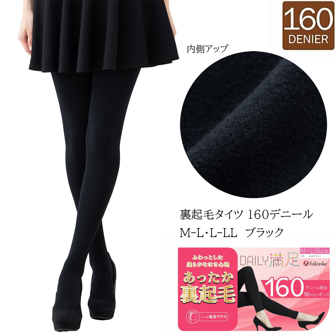 デイリー満足 裏起毛タイツ 160デニール相当 M-L・L-LL 後ろ長マチ 黒 レディース 福助 ・・・