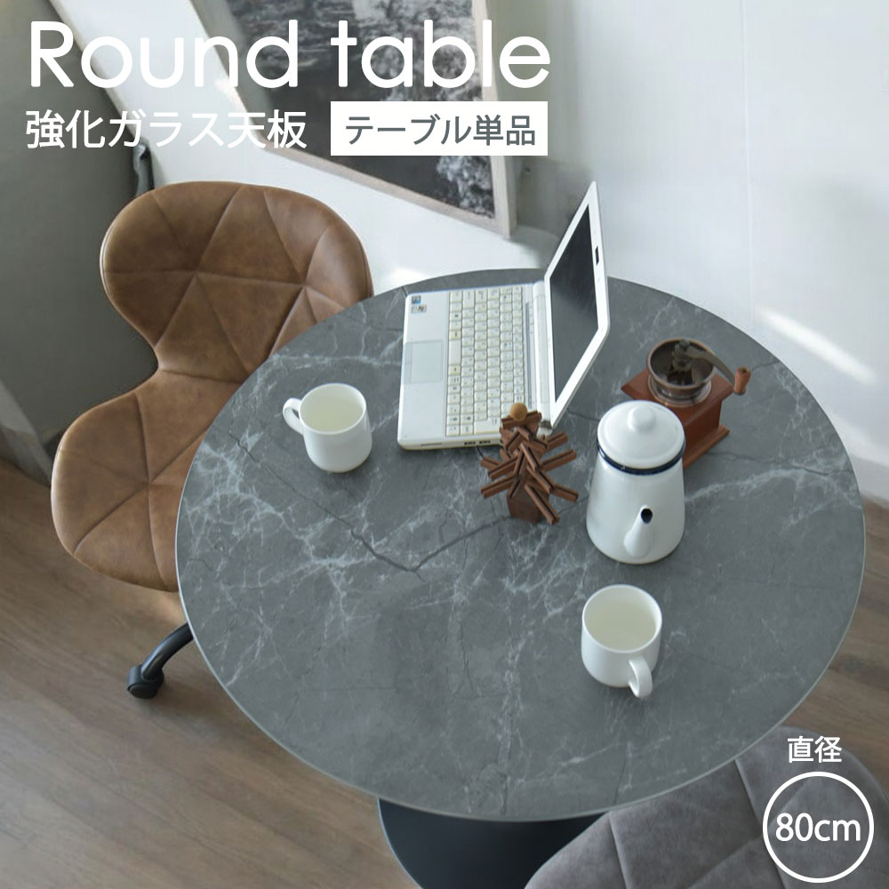 丸型 幅80cm 丸テーブル ダイニングテーブル 2人掛け 円形 テーブル 食卓 ガラス 強化ガラス・・・