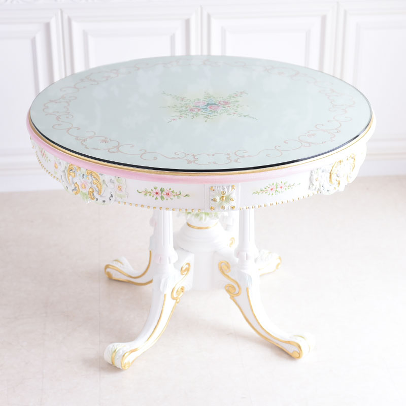 白いテーブル 円形 姫系 ロココ【ROCOCOアントワネット 110Φダイニング丸テーブル(ガラス天・・・
