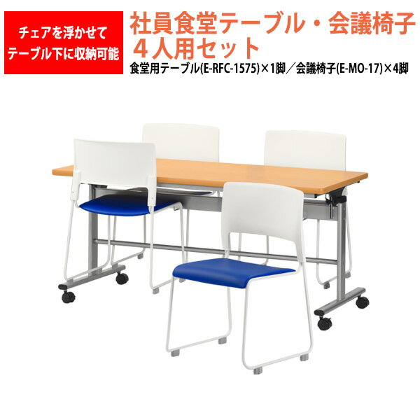 社員食堂テーブルセット 4人用 掃除が簡単機能付き 社員食堂テーブル E-RFC-1575 1脚 +・・・
