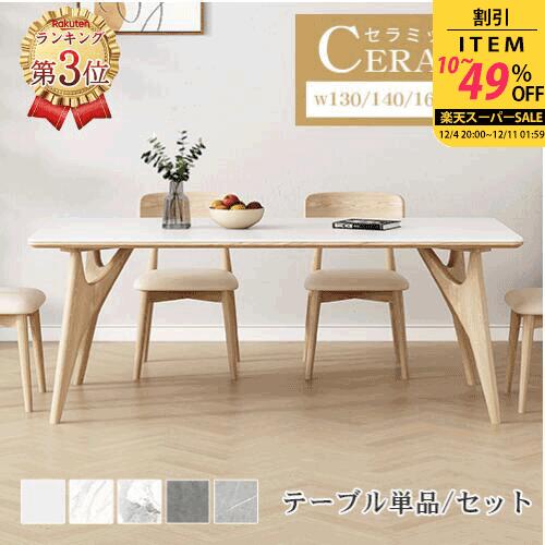 【3年保証・楽天3位】ダイニングテーブル 天然木 160cm 4人掛け セラミックテーブル ホワイト・・・