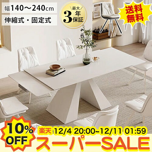 【10%OFF★楽天スーパーSALE】セラミック ダイニングテーブル 伸縮 伸長式 白 ダイニングテ・・・