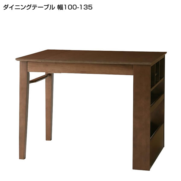 ダイニングテーブル 幅100 幅135 2人用 4人用 長方形 棚付き 収納付き シェルフラック 伸・・・