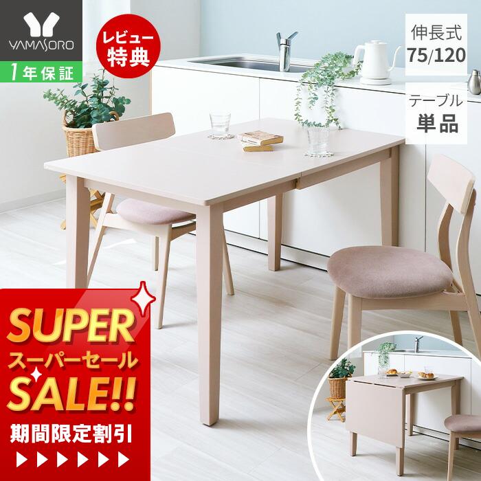[スーパーSALE割引]【1年保証&当店限定特典付】ダイニングテーブル 伸長式 幅75 幅120 伸・・・