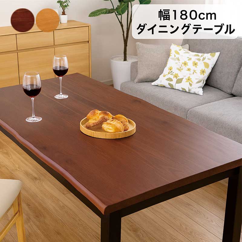 一枚板風 ダイニングテーブル 6人掛け 幅180cm 180x90 オーク材 ラバーウッド材 天然木・・・