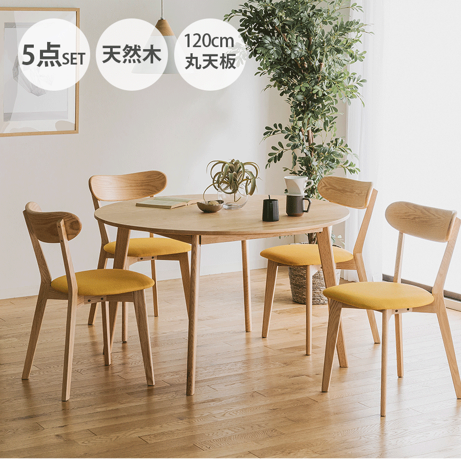 ダイニングセット 5点セット ダイニングテーブル 幅120cm ダイニングチェア 4脚 ナチュラル ・・・