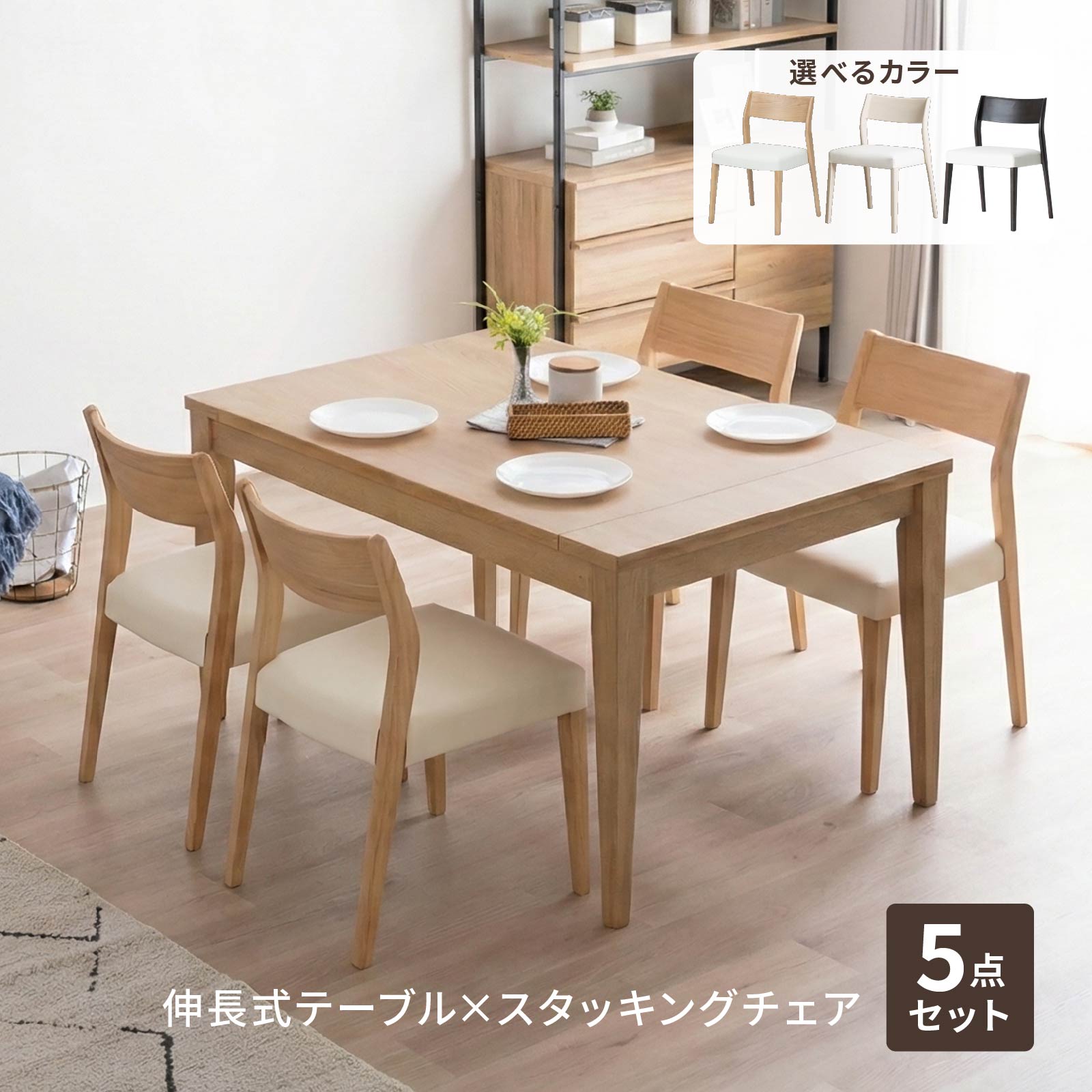 【5%OFFクーポン配布中】 ダイニングテーブル セット 伸長式テーブルセット 4人掛け スタッキン・・・