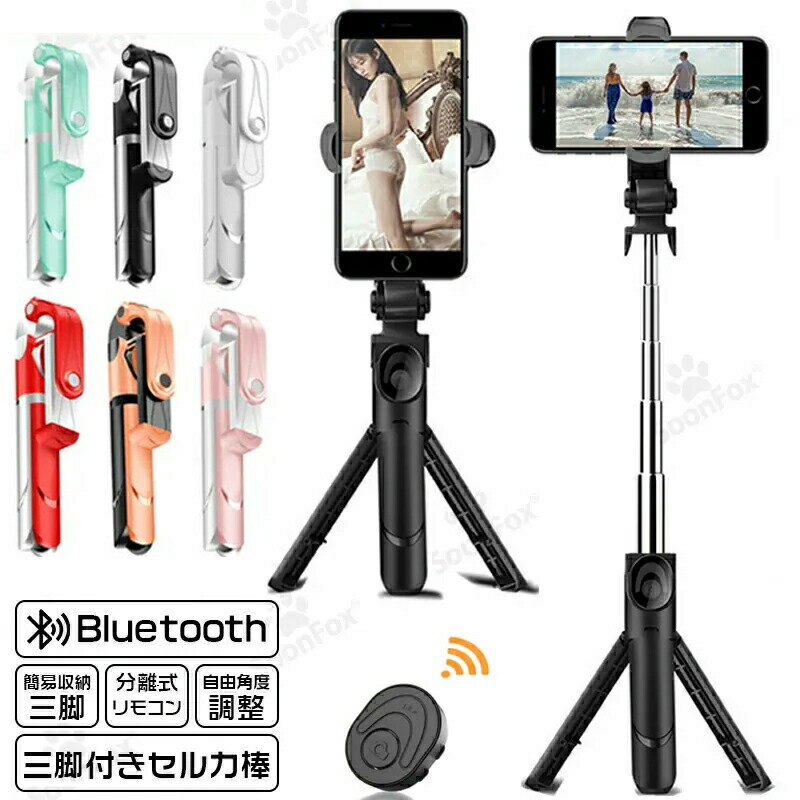 自撮り棒 BlueTooth 自撮り棒 三脚付き 遠隔 リモコン コンパクト 縦 セルカ棒 三脚 じ・・・