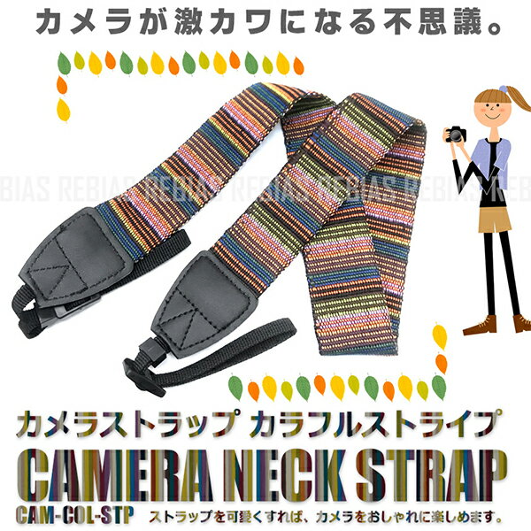 カメラ ストラップ カラフル ストライプ デジカメ バンド ネック 一眼レフ 安定 落下 防止 安心・・・