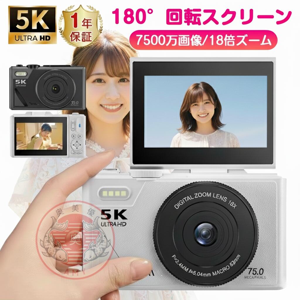 \7500万画素・5K動画撮影/【進化版18倍ズーム】デジタルカメラ 自撮り デジカメ WIFI対応・・・