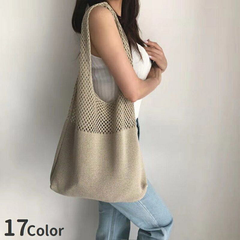 送料無料 トートバッグ ニット レディース 編みバッグ ショルダーバッグ カバン 鞄 かわいい おし・・・