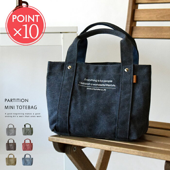 メール便送料無料 トートバッグ ミニ キャンバス 仕切り【バッグ スクエア 間仕切り 小さめ レディ・・・