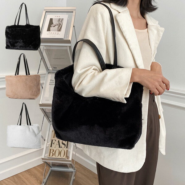 【取り寄せ対応】トートバッグ 大きめ ファー 布 A4 無地 韓国 ショルダーバッグ バッグ 鞄 レ・・・