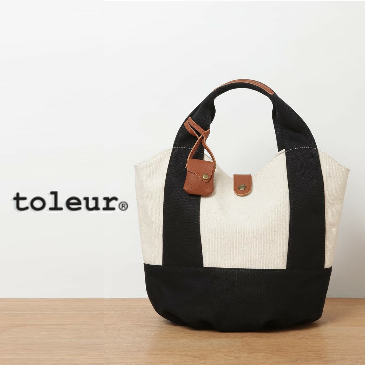 toleur トーラ トートバッグ ラウンド ミディアム 綿 キャンバス 牛革 カウレザー
