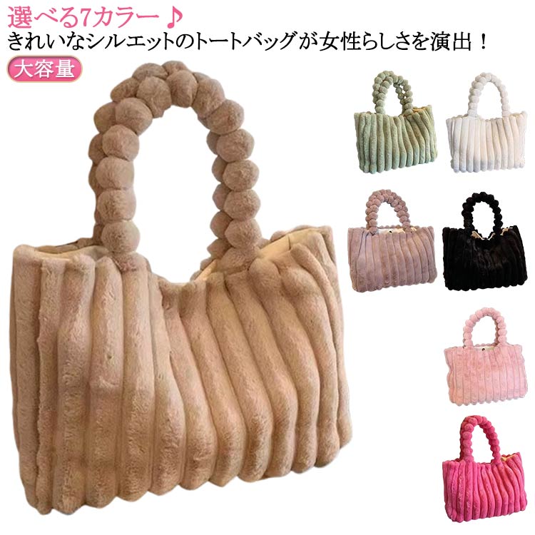大きめ レディース ファーバッグ レディース ホワイト バッグ 送料無料 トートバッグ 白 ファー ・・・