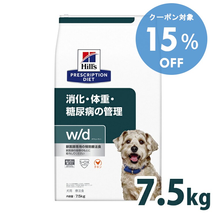 【15%OFFクーポン★4-10日迄】犬用 療法食 ヒルズ w/d 7.5kg 普通粒 消化・糖尿病・・・