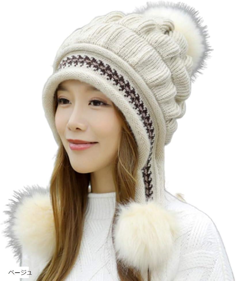 帽子 レディース 冬 ニット帽 手袋 防寒 帽子と手袋のセット 4カラー(ベージュ, フリー)