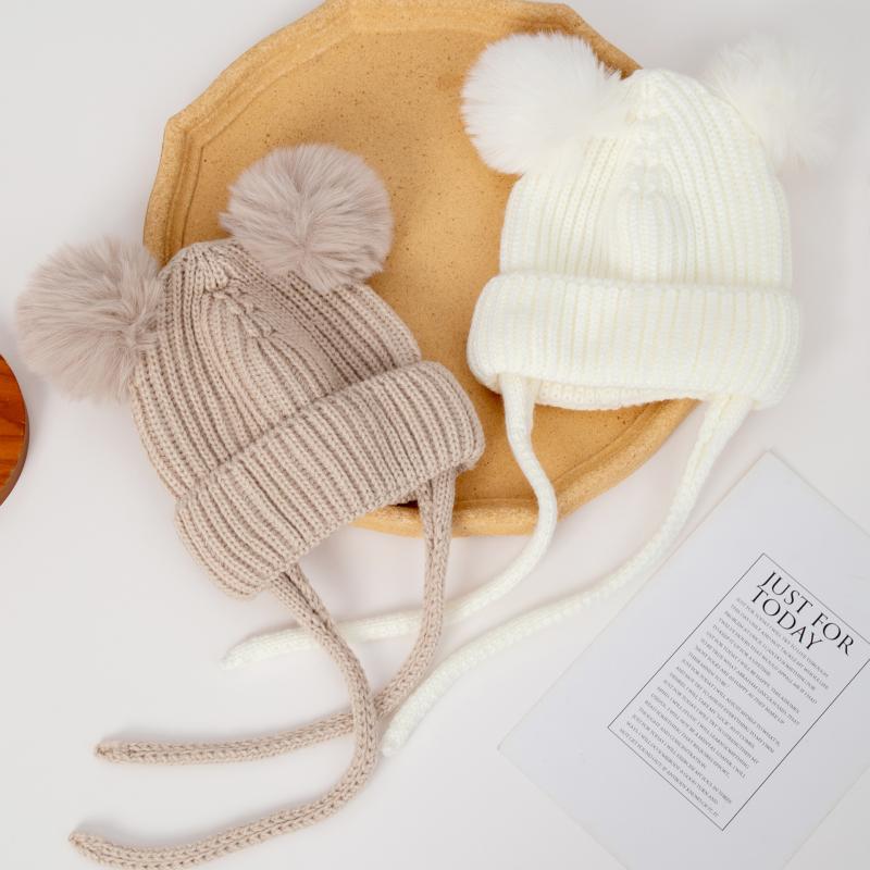 ニット帽 ベビー キッズ 秋冬 毛糸 帽子 耳当て付き 防寒 暖かい かわいい ボンボン付き 幼児 ・・・
