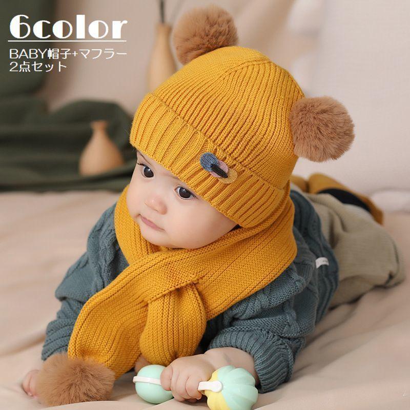ニット帽 マフラー 2点セット 帽子 ネックウォーマー ベビー 赤ちゃん 子供用 男の子 女の子 ニ・・・