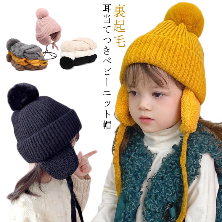 ニット帽 キッズ ベビー 帽子 子供用 帽子 耳あて 防寒帽子 秋冬 ベビー 防寒 ボア ポンポン ・・・