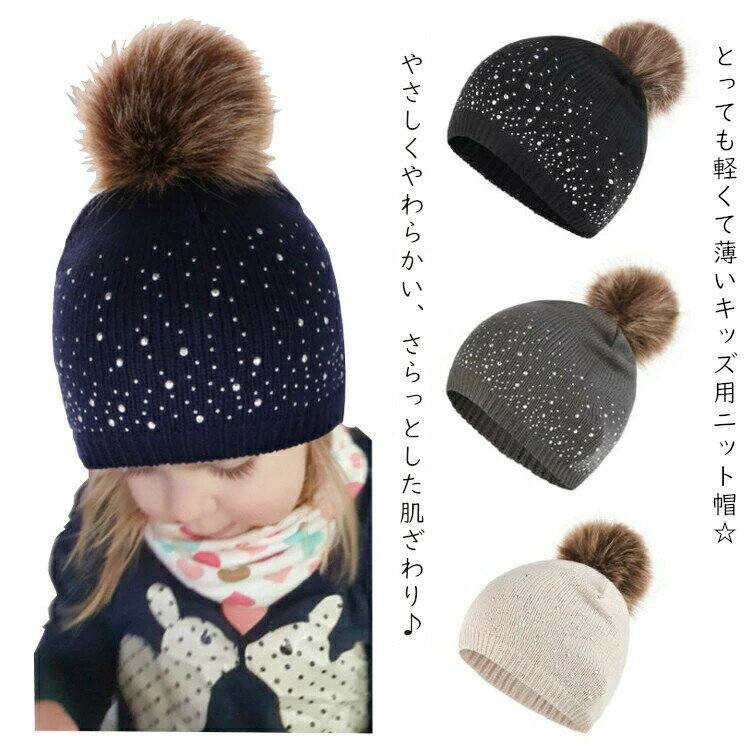 子供ニット帽子 女の子 ベビー 薄手ニット帽子 子供帽子 冬 こども ニット帽子 ボンボン付き かわ・・・