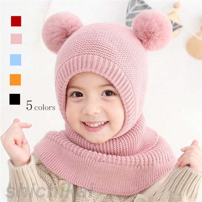 新生活 ニット帽子 マフラー 子ども ボンボン付き キッズ 帽子 耳付き 無地 耳守る おしゃれ 秋・・・