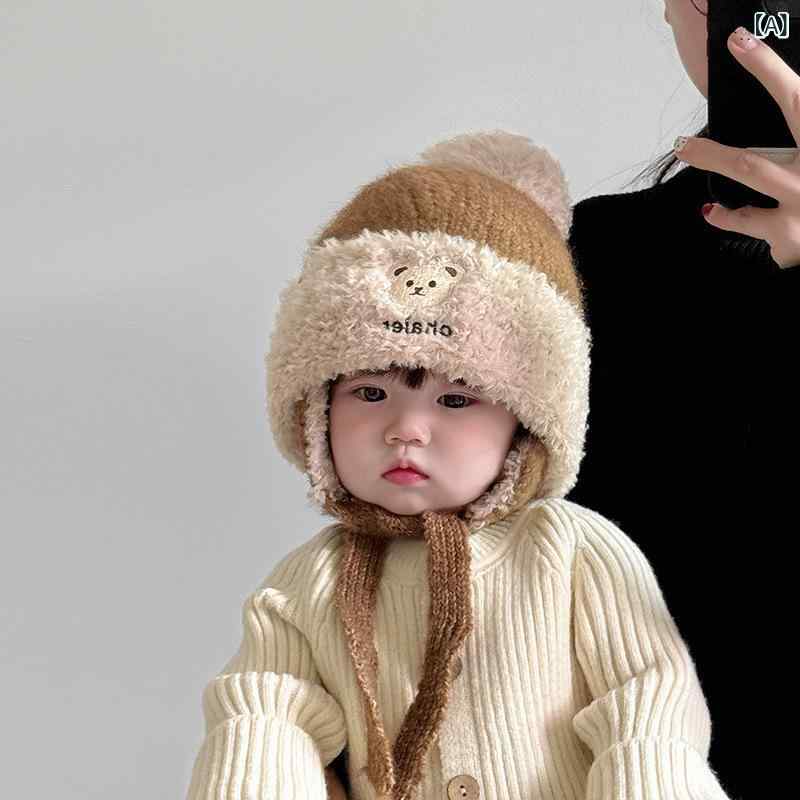 ニット帽 ベビー キッズ 男の子 女の子 男女兼用 冬用 厚手 防寒 保温 防風 耳あて付き かぶり・・・