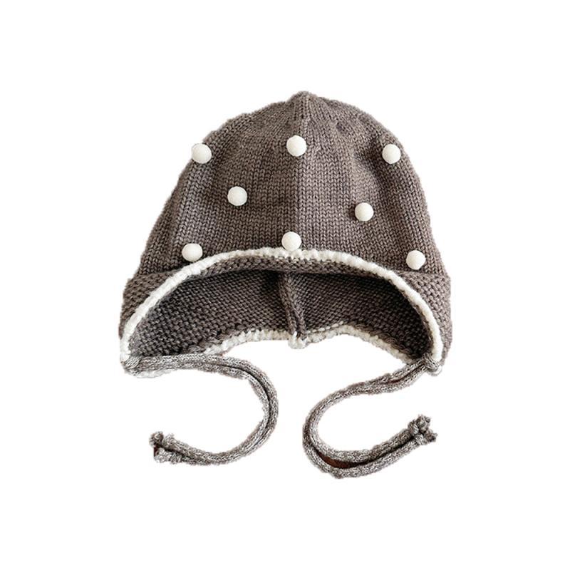 帽子 キッズ ベビー グレー系 ニット帽 防寒 暖かい かわいい ボンボン付き 耳当て 秋冬